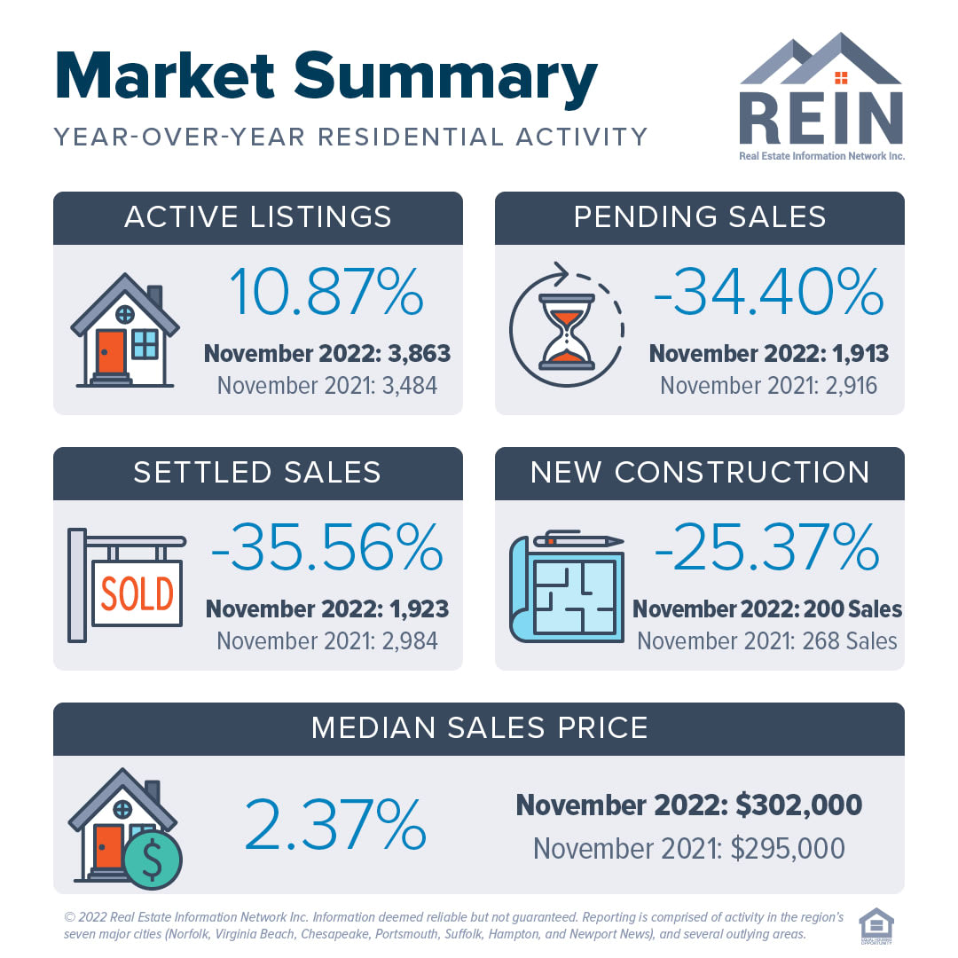 In the Hampton Roads MSA, as in other downturns, we will be less affected due to the necessity of military moves. However, we expect the Year Over Year decline in home sales to persist until rate stability is achieved. Higher rates will mean fewer qualified buyers and buyers qualifying to buy less, but true balance will not return to the market until significant inventory is built. This is a matter of years, not quarters.